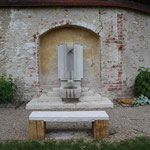 Der Brunnen, gestaltet wie ein Flügelaltar mit Tabernakel, kann offen, geschlossen oder halboffen stehen. Er steht für die verborgene Gegenwart Gottes im eigenen Herzen. Im dreifachen Stahl